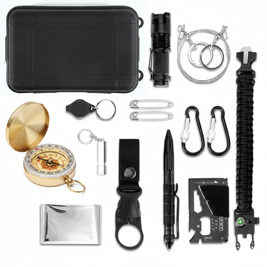 14-teiliges Survival Kit für Camping & Outdoor mit Kompass