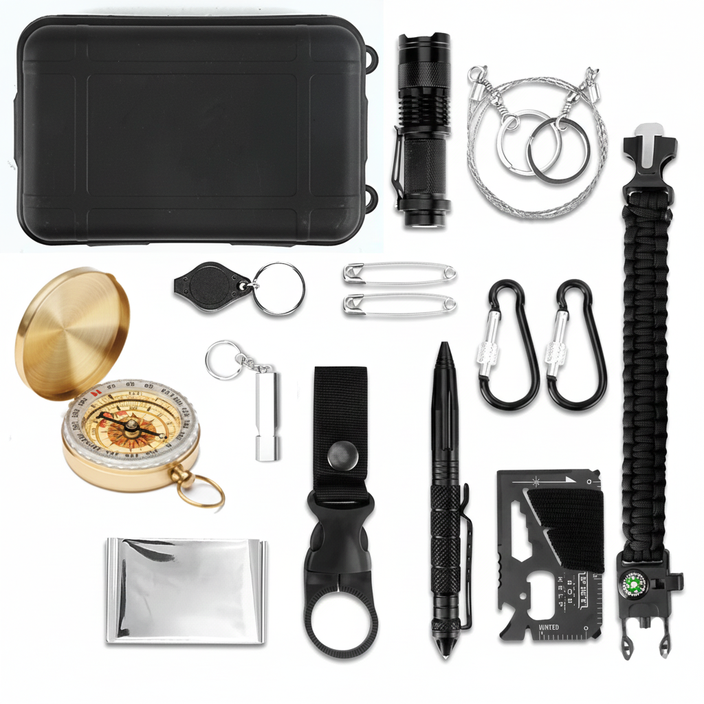 14-teiliges Überlebensset für Camping & Outdoor mit Kompass