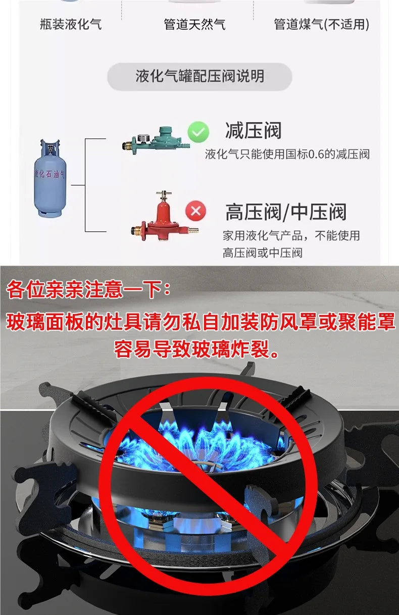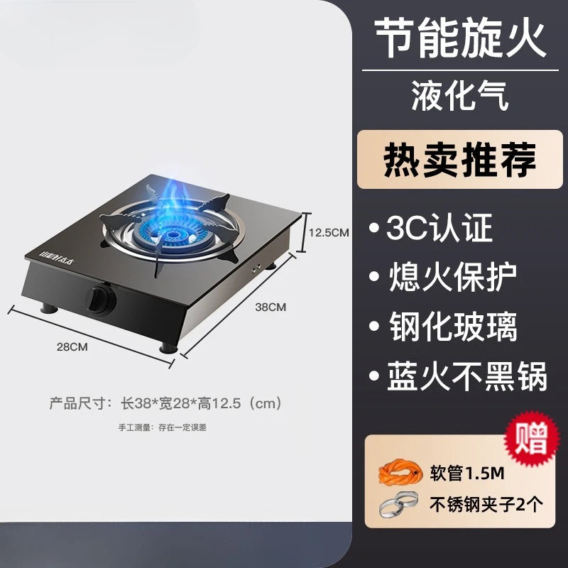 Krachtige enkelvoudige gasbrander met gehard glas & elektronische ontsteking