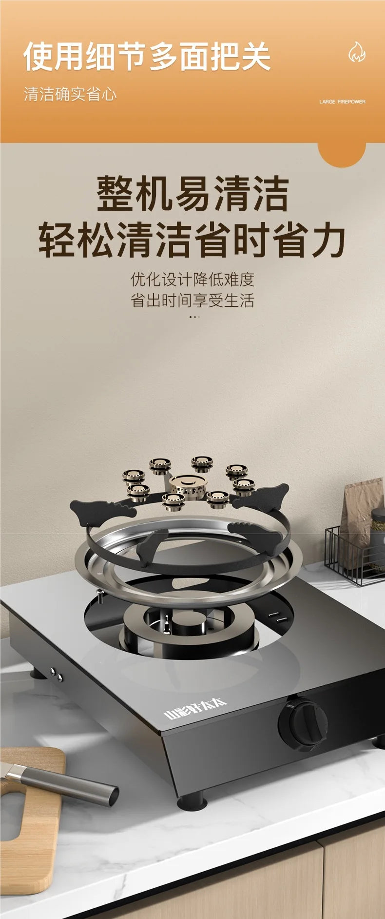 De kookplaat is gemaakt van gehard keramisch glas, wat zorgt voor een luxe uitstraling en makkelijke reiniging. Dankzij de elektronische pulsstarter ontsteek je het vuur met één draai, zonder gedoe met lucifers. Het open luchttoevoersysteem zorgt voor een krachtige verbranding en optimale warmte.