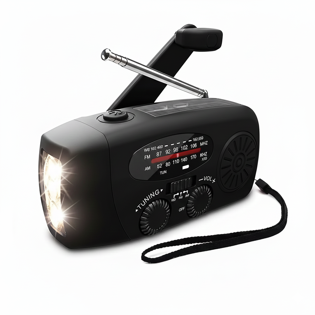* Kompaktes Notfallradio mit Solar und Kurbelbetrieb