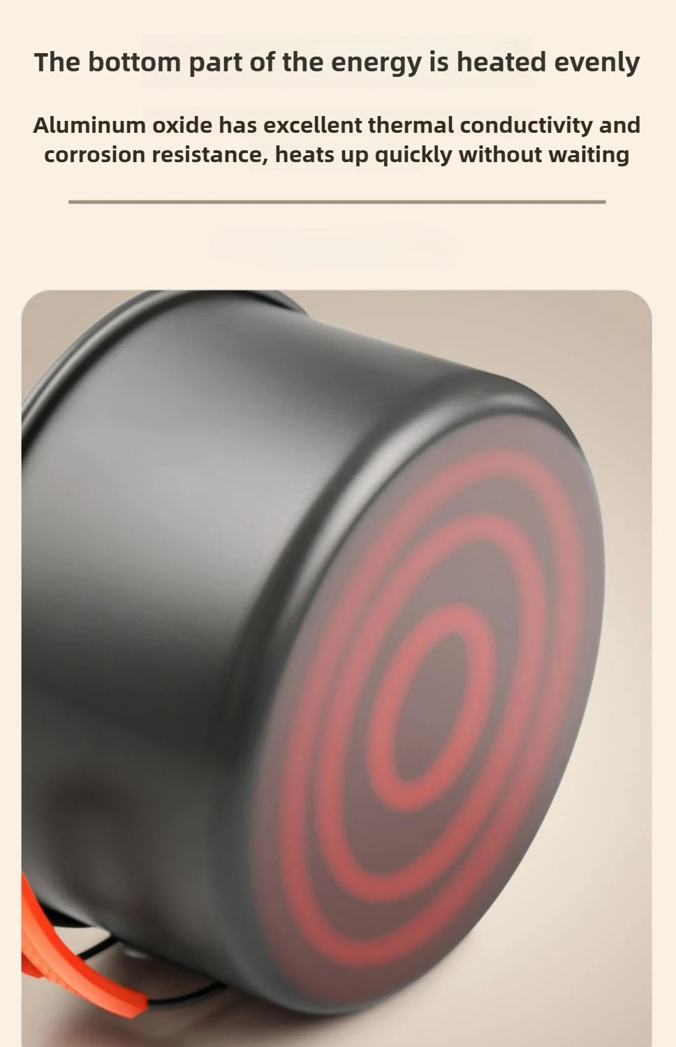 De kookset bevat alles wat je nodig hebt om buiten te koken: een waterketel, meerdere pannen en een koekenpan. Of je nu water wilt koken, soep wilt maken of een eitje wilt bakken, met deze set ben je altijd voorbereid. De onderdelen zijn gemaakt van sterk aluminium, waardoor ze duurzaam, hittebestendig en geschikt zijn voor intensief gebruik in elke buitenomgeving.